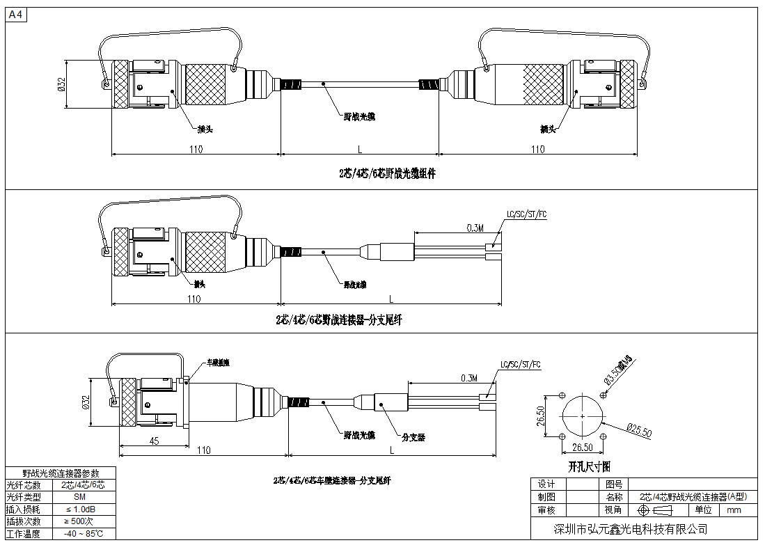 可選用含單芯野戰(zhàn)光纜的野戰(zhàn)光纜車壁連接器,形式有 SC、FC、ST、LC 等。