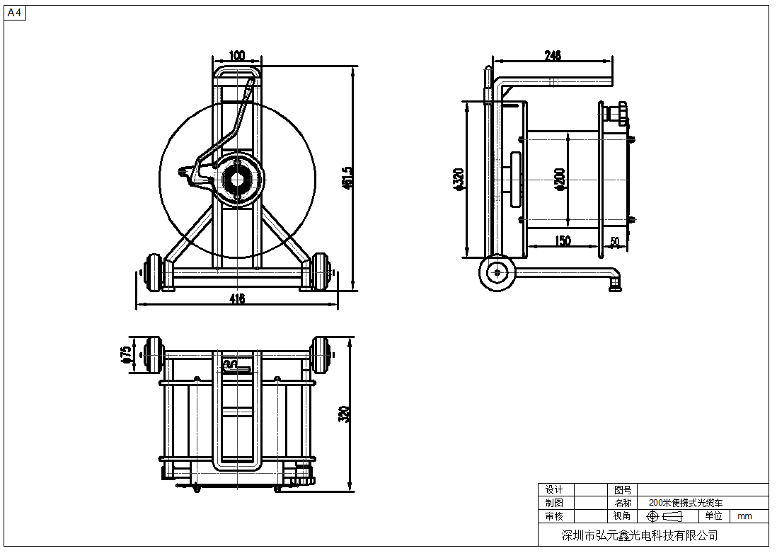 便攜式野戰(zhàn)線纜收放架(含盤)由收放線裝置,拉桿裝置、連接器固定裝置、導(dǎo)輪機(jī)構(gòu)等零部件組成,用于快速敷設(shè)或回收及繞存野戰(zhàn)線纜。